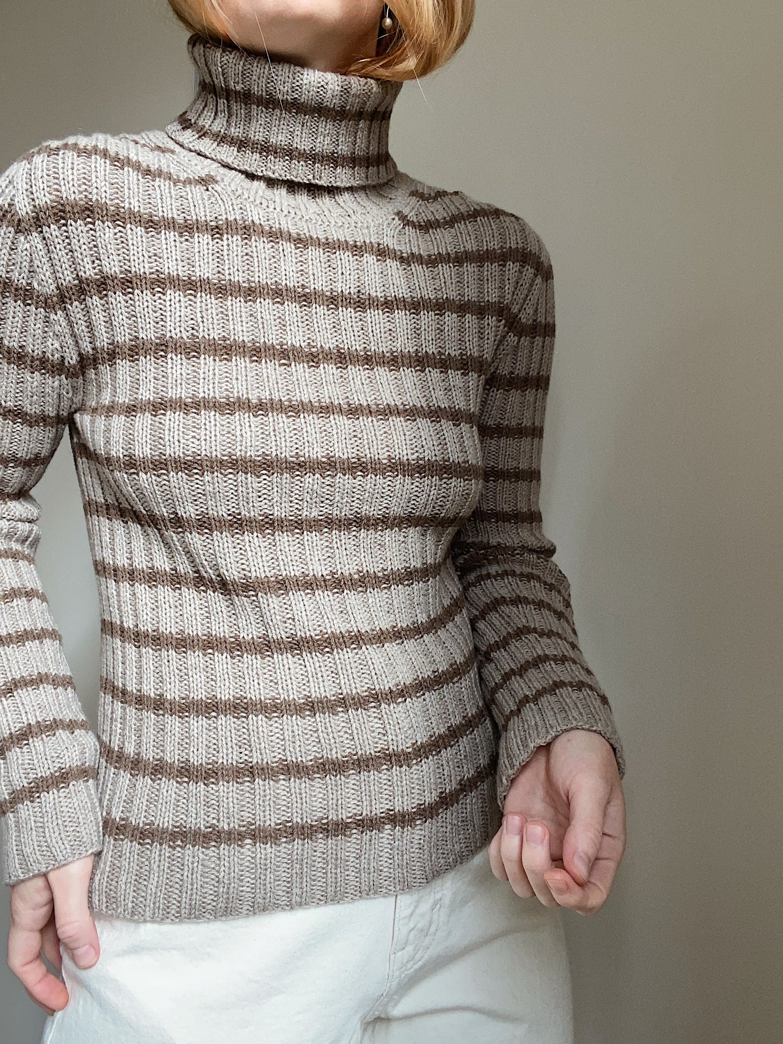 Love Knitwear European Sweater Women 039 S Size 16 White Striped Knit Pullover Ebay